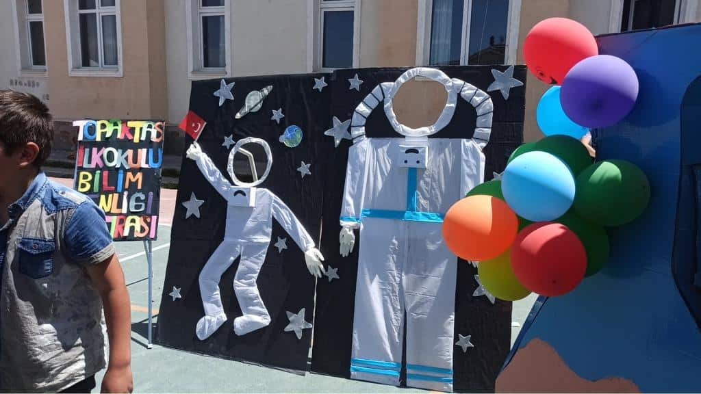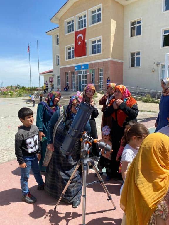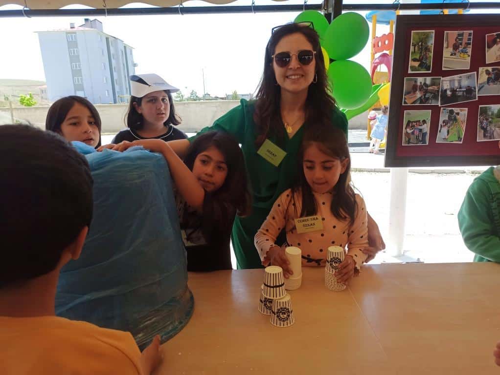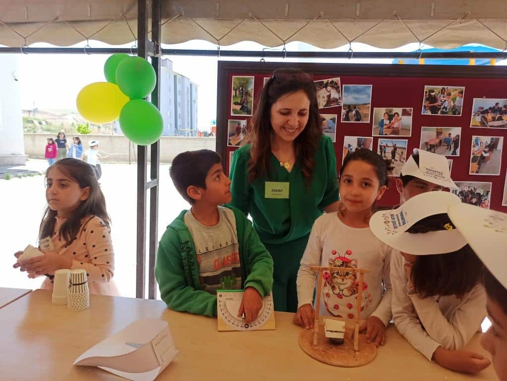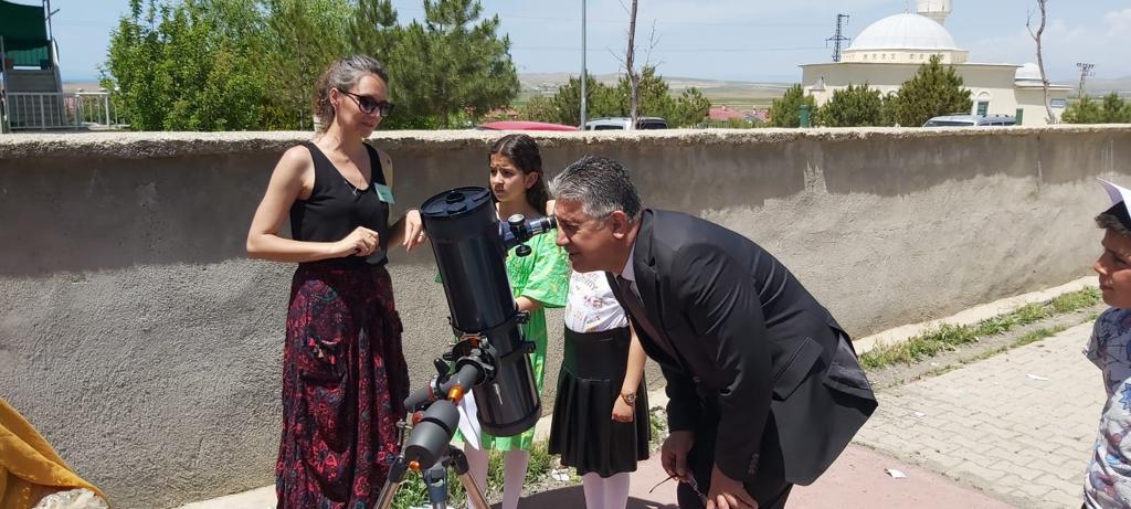 7 Haziran 2023 günü okulumuzda Fen Bilimleri Öğretmenimiz Serap Kayhan’ın koordinasyon ve rehberliğinde Bilim Şenliği düzenlenmiştir. Şenliğimizde öncelikle doğal ışık kaynağımız Güneş’ten faydalanılarak yapılmış güneş saati, güneş fırını gibi insanlığa ait icatlar tanıtılmış ve sonrasında Okulöncesi Öğretmenimiz Merve Karakuş rehberliğinde teleskop ile Güneş gözlemi yapılarak güneş yüzeyindeki lekeler gözlemlenmiştir. Şenliğimizin çadır alanında öğrencilerimizin yıl boyunca Teknoloji ve Tasarım dersinde Bilişim Öğretmenimiz Seher eşliğinde yapmış oldukları teknolojik tasarımlar sergilenmiş; görevli öğrencilerimiz ve Sınıf Öğretmenimiz M. Raşid Avcı tarafından fizik, kimya ve biyoloji alanlarından hazrılanan deneyler ile ziyaretçilerimize sunulmuştur. Müdür Yardımcımız Ermiya Kanan ise hazırladığı düzenek ile basınçla roket fırlatma deneyimi yaşatmıştır. Atölyelerimizde ise görevli miniklerimiz isteyen ziyaretçilerimize güneş saati, gök atlası, üflemeli roket gibi etkinlikler yapmalarına rehberlik etmişlerdir. Şenliğimize katılan ziyaretçilerimiz arasında Tuşba İlçe Milli eğitim Müdürü Mehmet Bakır Bedevioğlu; Türk Eğitim Sen İl Başkanı Selçuk Yürektürk; Türk Eğitim Sen Şube Başkan Yardımcıları Yüksel Sökmen, Abdulmenaf Değer ve Vural Öntürk; İl Orman Müdürü Mehmet Kandilli; İl Orman Şefi Onur Keleş; komşu okullarımızdan Zeve İlkokulu Müdürü Vedat Avcı ve Çitören İlkokul Müdürü Erdal Yaman; dostlarımız ve velilerimiz bulunmaktadır. Bilim Şenliğimizin gerçekleşmesinde ve bilimi sevdirmemizde emeği geçen Serap öğretmenimiz başta olmak üzere diğer bütün öğretmen arkadaşlarımıza sonsuz teşekkürlerimizi sunarız.